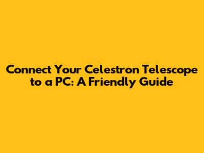 Hey, fellow stargazers! Ever wondered how to supercharge your Celestron telescope experience by connecting it to your trusty PC? Well, guys, you've come to the right place! Connecting your Celestron telescope to a PC isn't just some fancy tech trick; it opens up a whole universe of possibilities. Imagine controlling your telescope with incredible precision from your computer, using advanced planetarium software, capturing stunning astrophotography, and even automating your observing sessions. It’s like giving your telescope a brain upgrade! This guide is here to break down the process, making it super easy and totally achievable, even if you're not a computer whiz. We'll cover everything you need, from the cables to the software, and walk you through each step so you can start exploring the cosmos like never before. Get ready to unlock the full potential of your Celestron scope!