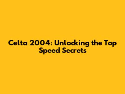 Conclusion: The Celta 2004 and the Quest for Top Speed