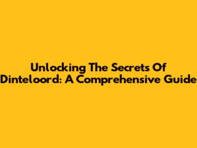 Unlocking The Secrets Of Dinteloord: A Comprehensive Guide
