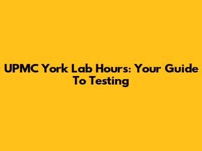 UPMC York Lab Hours: Your Guide To Testing