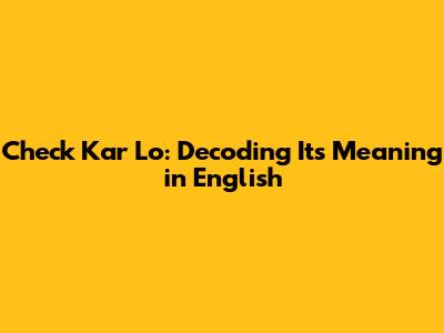 Unveiling the Core Meaning of "Check Kar Lo"