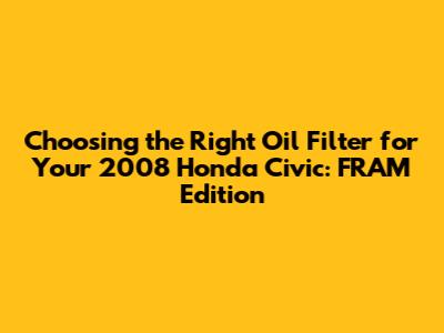 Choosing the right oil filter is a critical part of maintaining your 2008 Honda Civic. By understanding the different FRAM filter options and following a regular oil change schedule, you can keep your engine running smoothly for years to come. Remember to check your owner's manual and use the FRAM filter lookup tool to find the perfect fit for your Civic. Happy motoring, and keep that engine purring!