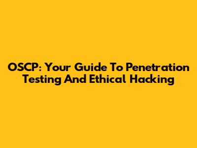 OSCP: Your Guide To Penetration Testing And Ethical Hacking