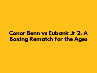 Conor Benn vs. Eubank Jr. 2 is more than just a boxing match. It's a clash of legacies, a test of character, and a must-watch event for any fight fan. With so much at stake, this rematch promises to be one for the ages. Get ready for an action-packed night of boxing! Get ready for an epic battle that will be talked about for years to come. Whether you're a long-time boxing aficionado or a casual fan, this is a fight you won't want to miss. Mark your calendars and prepare for an unforgettable night of boxing. It's time to witness history in the making!