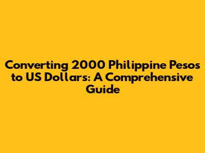Hey guys! Ever wondered how much 2000 Philippine pesos are worth in US dollars? Well, you're in the right place! We're diving deep into the intricacies of currency conversion, specifically focusing on the exchange rate between PHP (Philippine Peso) and USD (US Dollar). Converting money can sometimes feel like a puzzle, but don't worry, we'll break it down into easy-to-understand pieces. This guide will walk you through everything you need to know, from understanding the current exchange rates to the practical steps of converting your money. Whether you're a traveler, an investor, or just curious, understanding currency conversions is a valuable skill. Let's get started and find out how much your 2000 pesos are worth!