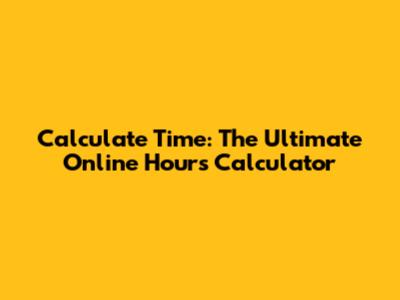 Calculate Time: The Ultimate Online Hours Calculator