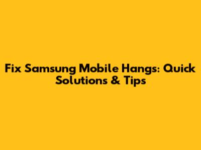 Fix Samsung Mobile Hangs: Quick Solutions & Tips