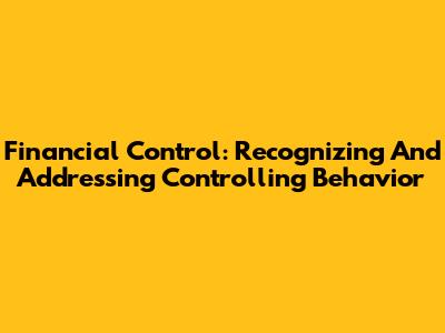Financial Control: Recognizing And Addressing Controlling Behavior