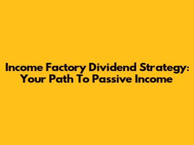 Income Factory Dividend Strategy: Your Path To Passive Income