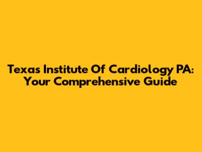 Texas Institute Of Cardiology PA: Your Comprehensive Guide