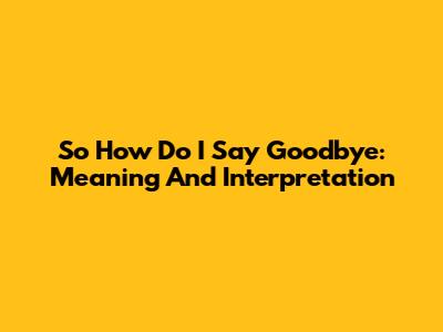 So How Do I Say Goodbye: Meaning And Interpretation
