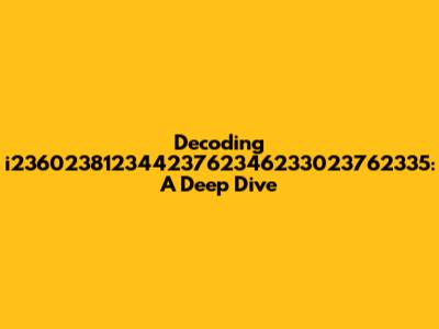 Let's get right into unraveling the enigma that is i23602381234423762346233023762335. I know, it looks like a random string of numbers that could be anything from a product serial number to some alien code. But fear not, we’re going to break it down and explore what it could possibly mean or represent. This is going to be a fun ride, so buckle up!