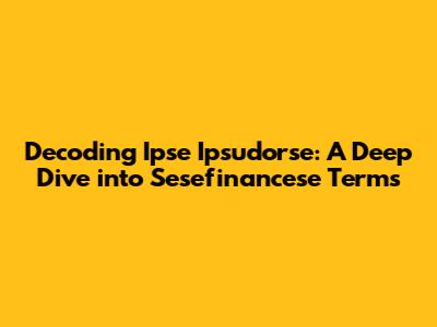 Let's dive into the intriguing world of Ipse Ipsudorse Sesefinancese terms. This might sound like a mouthful, and you're probably wondering, "What on earth is that?" Well, buckle up, because we're about to unravel the mystery and break down this complex term into easily digestible pieces. Understanding these terms is crucial, especially if you're involved in international finance, esoteric economics, or simply enjoy expanding your knowledge base. Ipse Ipsudorse and its connection to Sesefinancese represent a unique intersection of linguistic creativity and financial jargon. To truly grasp its significance, we need to deconstruct each component and explore their potential origins and applications. Imagine trying to navigate a foreign country without knowing the language; that's what dealing with specialized financial terminology can feel like. By the end of this article, you'll have a solid foundation for understanding not just this specific term, but also the broader context in which it might appear. We'll look at potential origins, related concepts, and practical examples to help you internalize the knowledge. This isn't just about memorizing words; it's about developing a critical understanding of how language shapes our perception of finance. So, get ready to put on your thinking caps and embark on this exciting linguistic and financial adventure! We'll start by dissecting each word individually before putting them back together to see the bigger picture. Remember, learning is a journey, and every new term you understand is a step forward in your financial literacy. Stick with me, and let's make this journey enjoyable and informative.