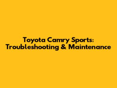 Toyota Camry Sports: Troubleshooting & Maintenance