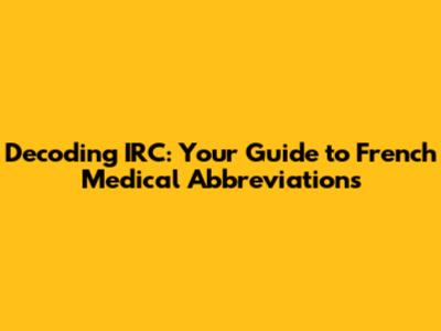 Hey guys! Ever stumbled upon an IRC in a French medical context and felt utterly lost? You're not alone! Navigating the world of medical abbreviations can be tricky, especially when you're dealing with a different language. But fear not, because we're about to embark on a journey to decode these cryptic codes! This guide aims to break down the IRC abbreviation medical français, providing you with a clear understanding of what it means and how it's used. We'll explore common abbreviations, their meanings, and how they fit into the broader landscape of French medical terminology. Ready to dive in? Let's get started!
