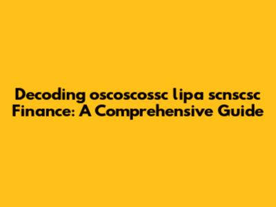 Navigating the world of finance can often feel like deciphering a secret code, especially when unfamiliar terms and acronyms pop up. In this guide, we're diving deep into the realm of "oscoscossc lipa scnscsc finance" to unravel its meaning, implications, and significance. Whether you're a seasoned investor, a curious student, or simply someone trying to make sense of the financial landscape, this comprehensive overview is designed to provide clarity and understanding. Get ready to demystify oscoscossc lipa scnscsc finance and gain valuable insights into its intricacies.