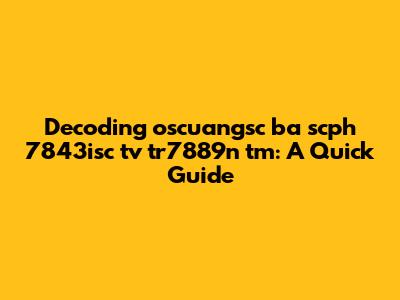 At first glance, "oscuangsc ba scph 7843isc tv tr7889n tm" appears to be an alphanumeric code, possibly a combination of abbreviations, model numbers, and identifiers. Let's dissect it piece by piece: