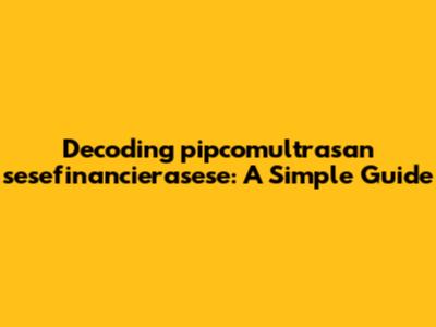 Hey guys! Ever stumbled upon a word or phrase that looks like it belongs to another planet? Today, we’re diving deep into one such term: pipcomultrasan sesefinancierasese. Sounds intimidating, right? Don’t worry, we'll break it down into bite-sized pieces, making it super easy to understand. Our mission? To transform this seemingly complex term into something you can casually drop in a conversation (or maybe not!). Let’s get started and unravel the mystery behind pipcomultrasan sesefinancierasese.