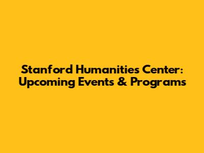 Stanford Humanities Center: Upcoming Events & Programs
