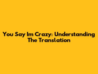 You Say I'm Crazy: Understanding The Translation