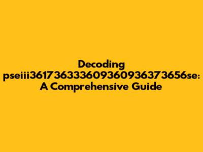 Let's dive deep into the mysterious world of pseiii361736333609360936373656se. You might be scratching your head, wondering what this enigmatic string of characters actually means. Well, you're not alone! In this comprehensive guide, we'll explore the possible origins, potential uses, and everything else we can uncover about this intriguing term. Whether you stumbled upon it randomly or have been actively searching for its meaning, we're here to break it down in a way that's easy to understand. So, buckle up and let's embark on this journey together! We'll explore various angles and try to provide some clarity, or at least some educated guesses, about what pseiii361736333609360936373656se could possibly represent. Remember, the internet is vast and full of cryptic content, so let's see if we can unravel this particular mystery!