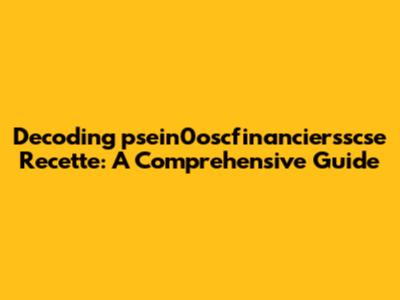 Navigating the world of finance and investments can often feel like deciphering a complex code. Terms like psein0oscfinanciersscse recette might initially seem daunting, but with a structured approach, we can break down its meaning and significance. This guide aims to provide a comprehensive understanding of what this term encompasses, particularly within the context of financial markets and potential investment strategies. Whether you are a seasoned investor or just starting, grasping these concepts is crucial for making informed decisions. Let’s dive into the intricacies of psein0oscfinanciersscse recette and explore its implications in the financial world.