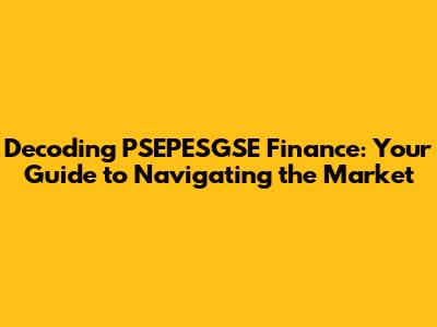 Demystifying PSEPESGSE Finance: Core Principles and Practices