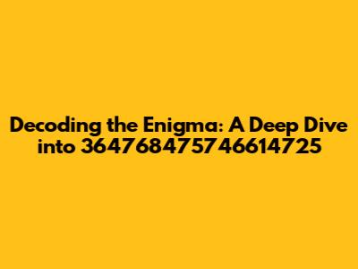 Hey guys, let's dive headfirst into something a little… enigmatic. We're talking about the number 364768475746614725. Yeah, that string of digits! Now, I know what you're thinking: “What even is that?” Well, buckle up, because we're about to embark on a journey of discovery, a deep dive into what this number might represent, how it might be used, and the various ways we can break it down. Think of it as a digital detective story, where we're the sleuths, and 364768475746614725 is the central mystery.