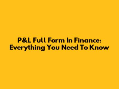 P&L Full Form In Finance: Everything You Need To Know