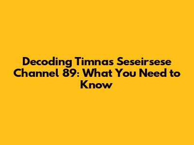 What Exactly Is Timnas Seseirsese Channel 89?
