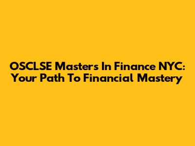 OSCLSE Master's In Finance NYC: Your Path To Financial Mastery