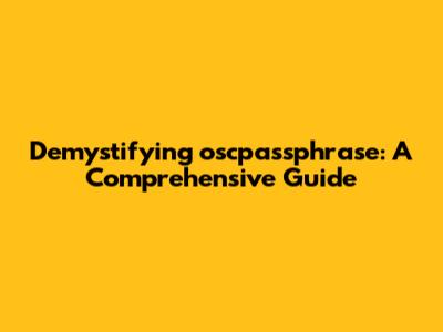 Let's dive deep into the world of oscpassphrase, a term that might sound like tech jargon but is actually quite understandable once broken down. In this guide, we'll explore what oscpassphrase means, its purpose, and how it's used in various contexts. By the end of this article, you'll have a solid grasp of this concept, regardless of your technical background.