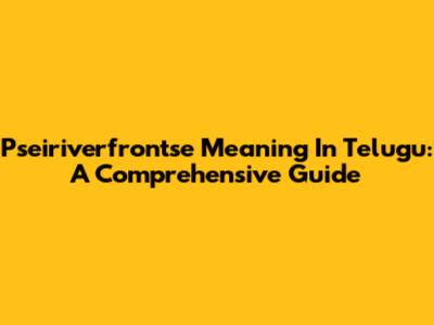 Pseiriverfrontse Meaning In Telugu: A Comprehensive Guide