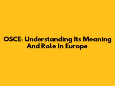 OSCE: Understanding Its Meaning And Role In Europe