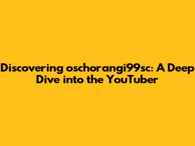 Hey guys! Ever stumbled upon a YouTube channel and wondered, "Who is this person behind the screen?" Today, we're diving deep into the world of oschorangi99sc, a YouTuber who has piqued the curiosity of many. Whether you're a long-time follower or just discovering this channel, let's explore who oschorangi99sc is, what kind of content they create, and what makes their channel stand out in the vast landscape of YouTube. Understanding a creator's background and their content style can really enhance your viewing experience and help you connect with their work on a deeper level. So, let's get started on this exciting journey of discovery!