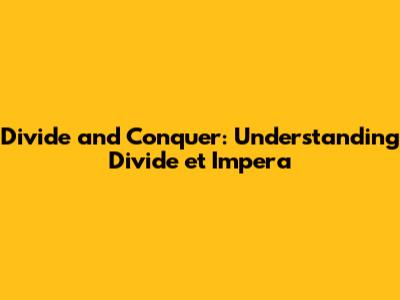 Unpacking 'Divide et Impera': The Core Concept