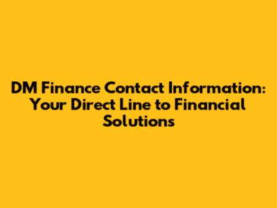 The Importance of Knowing DM Finance's Contact Number
