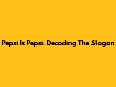 Pepsi Is Pepsi: Decoding The Slogan