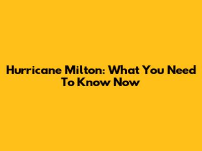Hurricane Milton: What You Need To Know Now