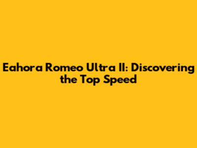 Tips to Maximize Your Eahora Romeo Ultra II Top Speed
