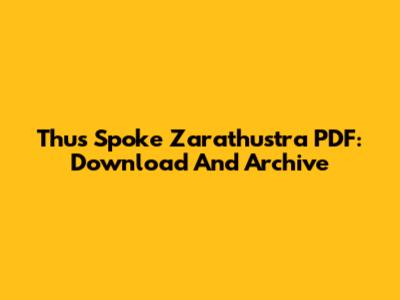 Thus Spoke Zarathustra PDF: Download And Archive