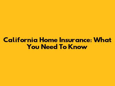 California Home Insurance: What You Need To Know