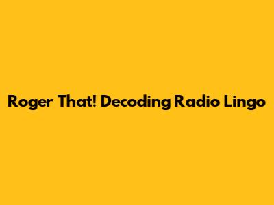 Roger That! Decoding Radio Lingo