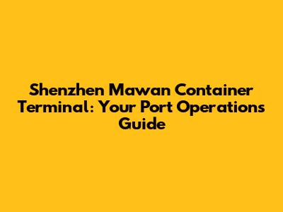 Shenzhen Mawan Container Terminal: Your Port Operations Guide