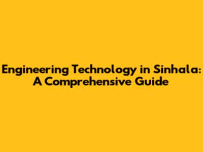 How to Study Engineering Technology in Sinhala
