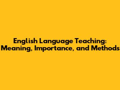 The Significance and Importance of English Language Teaching