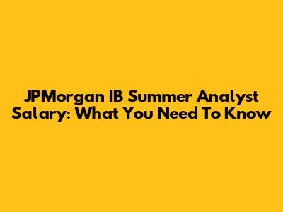 JPMorgan IB Summer Analyst Salary: What You Need To Know
