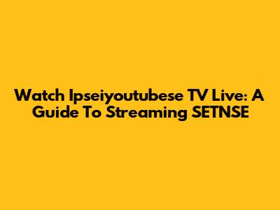 Watch Ipseiyoutubese TV Live: A Guide To Streaming SETNSE