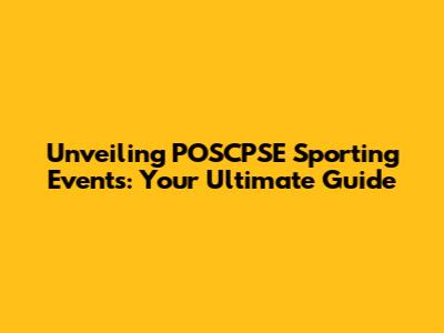 Unveiling POSCPSE Sporting Events: Your Ultimate Guide
