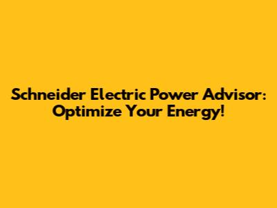 Schneider Electric Power Advisor: Optimize Your Energy!